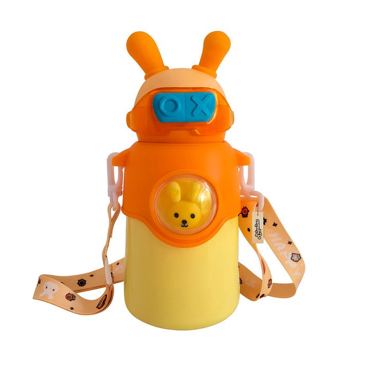 Funda Silicona Correa Ajustable. Acero Inoxidable Doble Capa. Pico Involcable de Silicona con Sorbete, Tapa de Apertura con Botón y Traba de Seguridad. Superficie Antideslizante. Tiempo de Conservación Bebida Fría 8hs - Caliente 2hs aprox. Medidas: Altura 21,5cm. Diámetro de la Base 8.5cm - Boca 5,5cm. Largo Total Tira Ajustable 98cm. Capacidad 600ml.