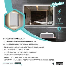 ESPEJO RECTANGULAR LED 90x70 Cm