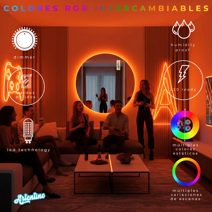 IDEAL BAÑOS, VESTIDORES, DORMITORIOS, LIVING. CON LUZ LED INTELIGENTE BAJO CONSUMO. INCLUYE CONTROL REMOTO PARA ENCENDER, APAGAR, DIMERIZAR Y SELECCIONAR COLORES.