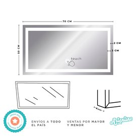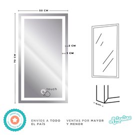 ESPEJO ESMERILADO TOUCH RECTANGULAR LED 70x50 Cm
