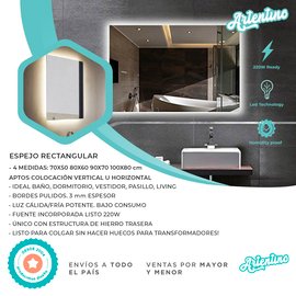 ESPEJO RECTANGULAR LED 90x70 Cm