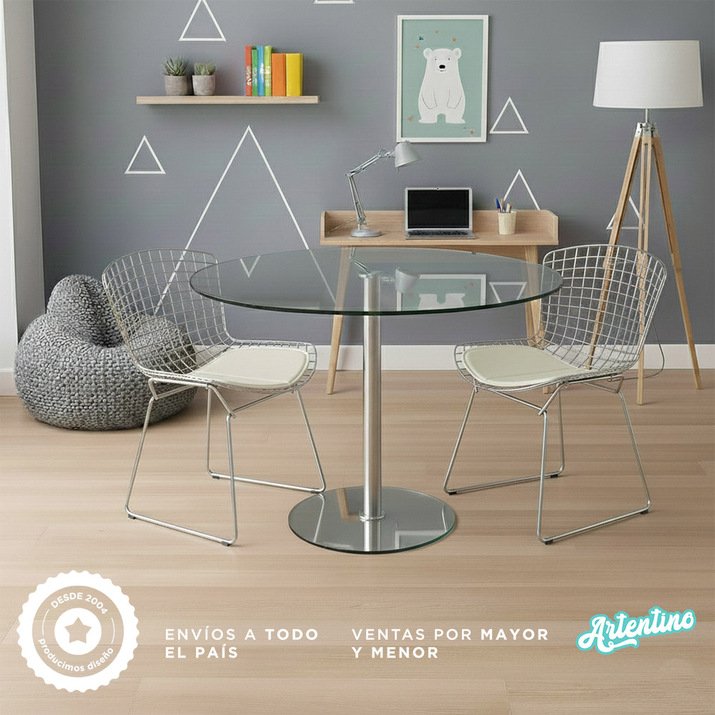 MESA REDONDA CRISTAL 60 Cm + 2 SILLAS BERTOIA CROMADAS