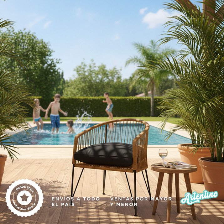 Apto Interior y Exterior Techado. Pintura Anti Óxido Negro. Patas Equipadas con Regatones Antideslizantes para Evitar Rayaduras en el Piso. Soporta hasta 140k. Medidas: Alto 78cm. Ancho 72cm. Profundidad 60cm. Altura Respaldo 42cm. Distancia de Asiento al Piso 36cm. Almohadón de Tela Tropical Mecánico con Relleno de Goma Espuma 15cm de Espesor.